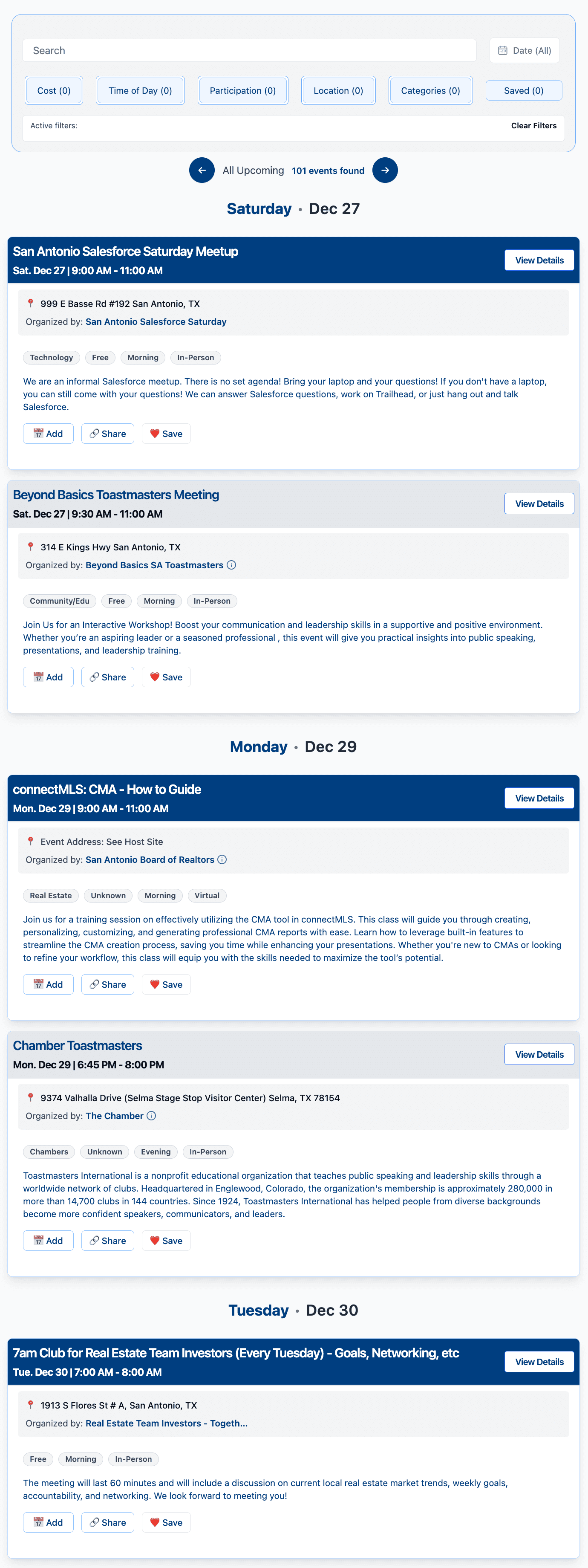 "This calendar has become essential for growing my network. I discover events I never would have found on my own"